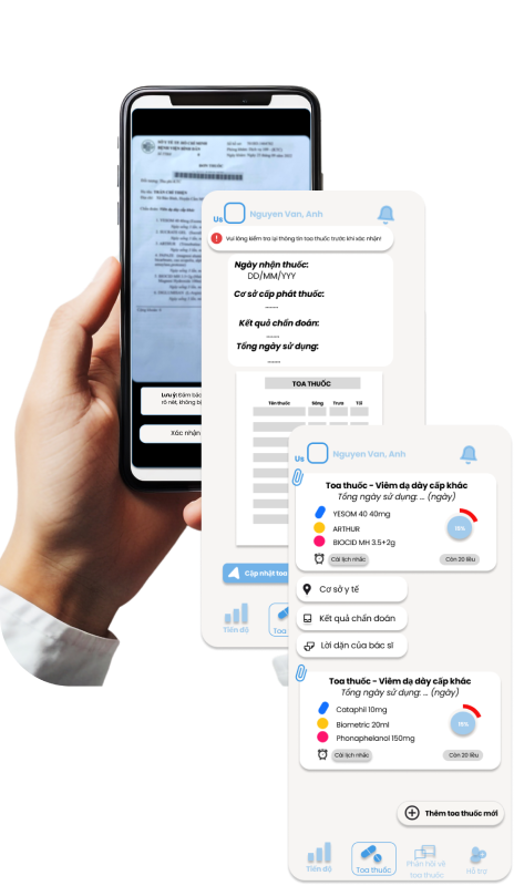 • Đảm bảo không bỏ lỡ đơn thuốc với hệ thống thông báo, nhắc nhở dùng thuốc thông minh